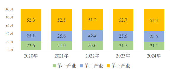 图1 近五年全市就业人员产业构成情况
