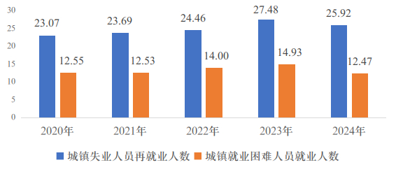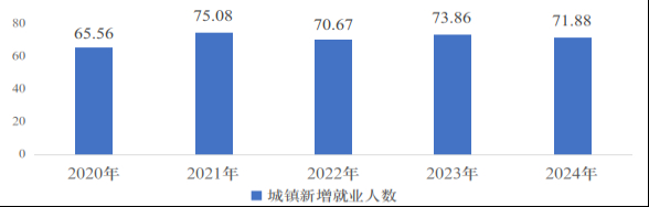 图2 近五年城镇新增就业人数