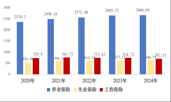 图4 近五年三项社会保险参保人数