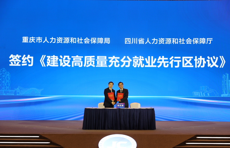 开幕式上,川渝两地人力社保部门签署《建设高质量充分就业先行区协议》,明确十项合作内容,双方将合力建设全国高质量充分就业先行区,为推动成渝地区双城经济圈建设提供重要支撑。