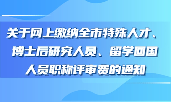 关于网上缴纳全市特殊人才、博士后研究人员、留学回国人员职称评审费的通知
